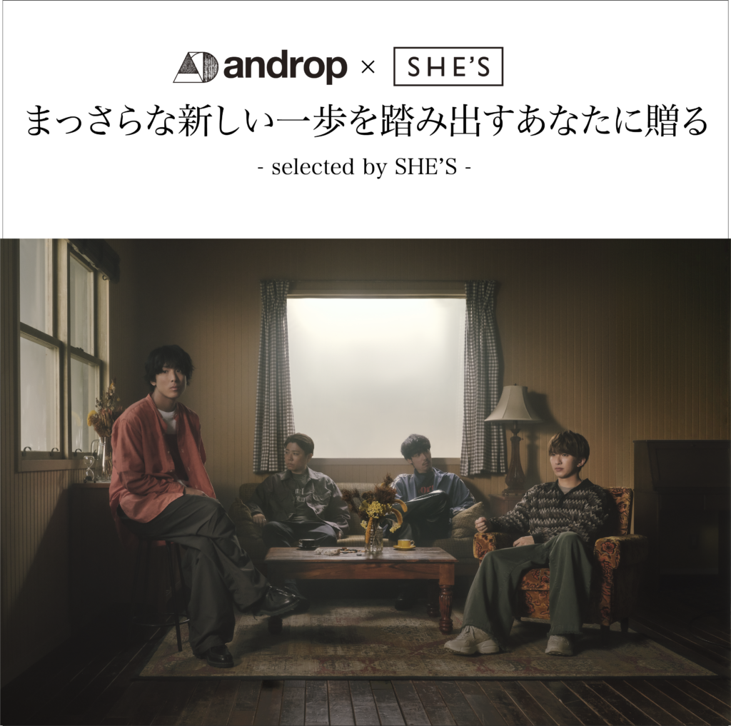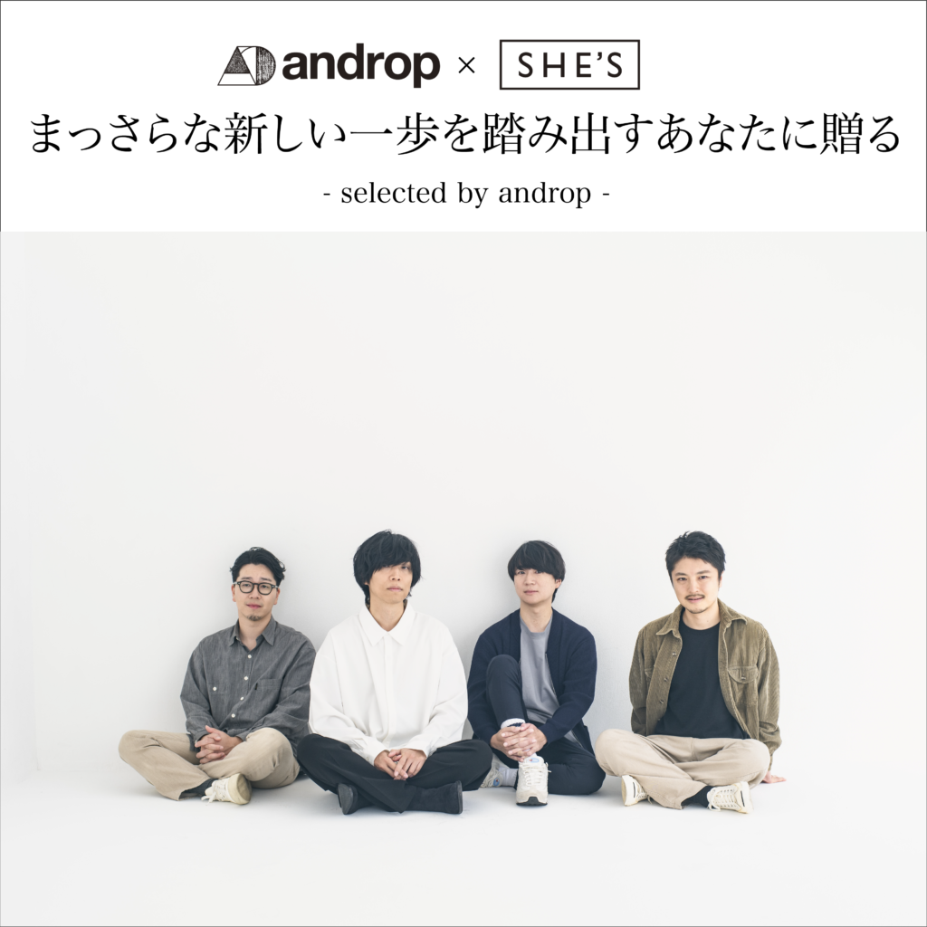 2024.09.11 androp × SHE’Sメンバー考案プレイリスト公開! 『Massara feat.井上竜馬(SHE’S)』のリリースを記念して、 andropとSHE’Sのメンバーそれぞれが「まっさらな一歩を踏み出すあなたへ」をテーマにお互いの曲をセレクトしたプレイリストを公開しました。 どのメンバーがどの曲を選んだのか、 ぜひ予想しながらお聴きください! ▼selected by SHE’S playlist ▼selected by androp playlist