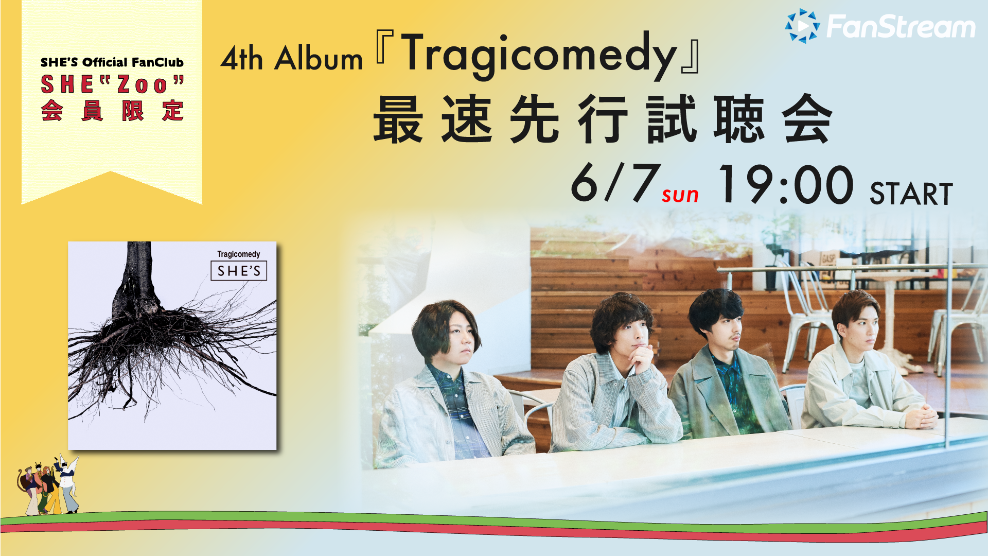 SHE’Sオフィシャルファンクラブ「SHE“Zoo“」会員限定で、4th Album『Tragicomedy』最速先行試聴会の開催が決定しました!