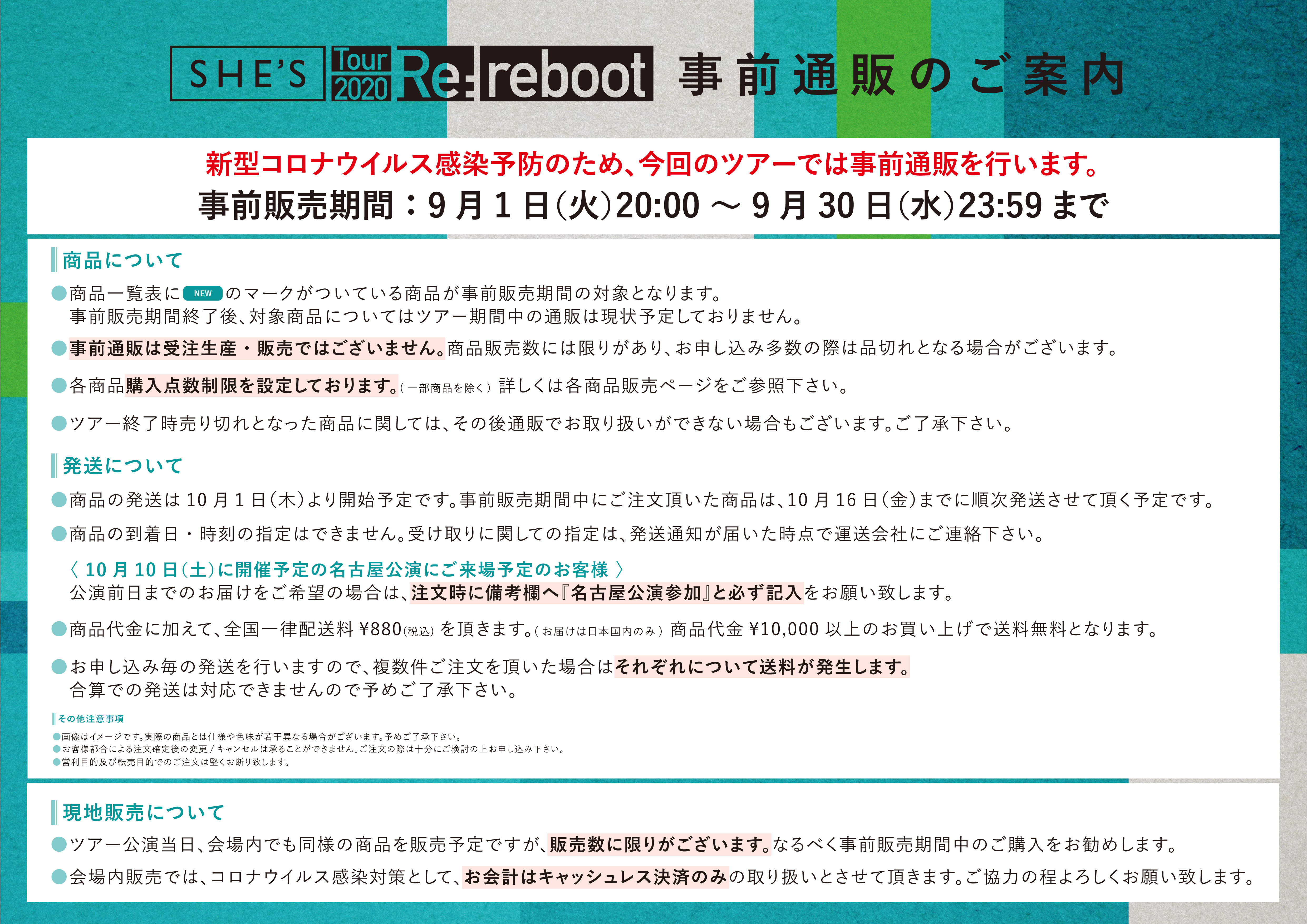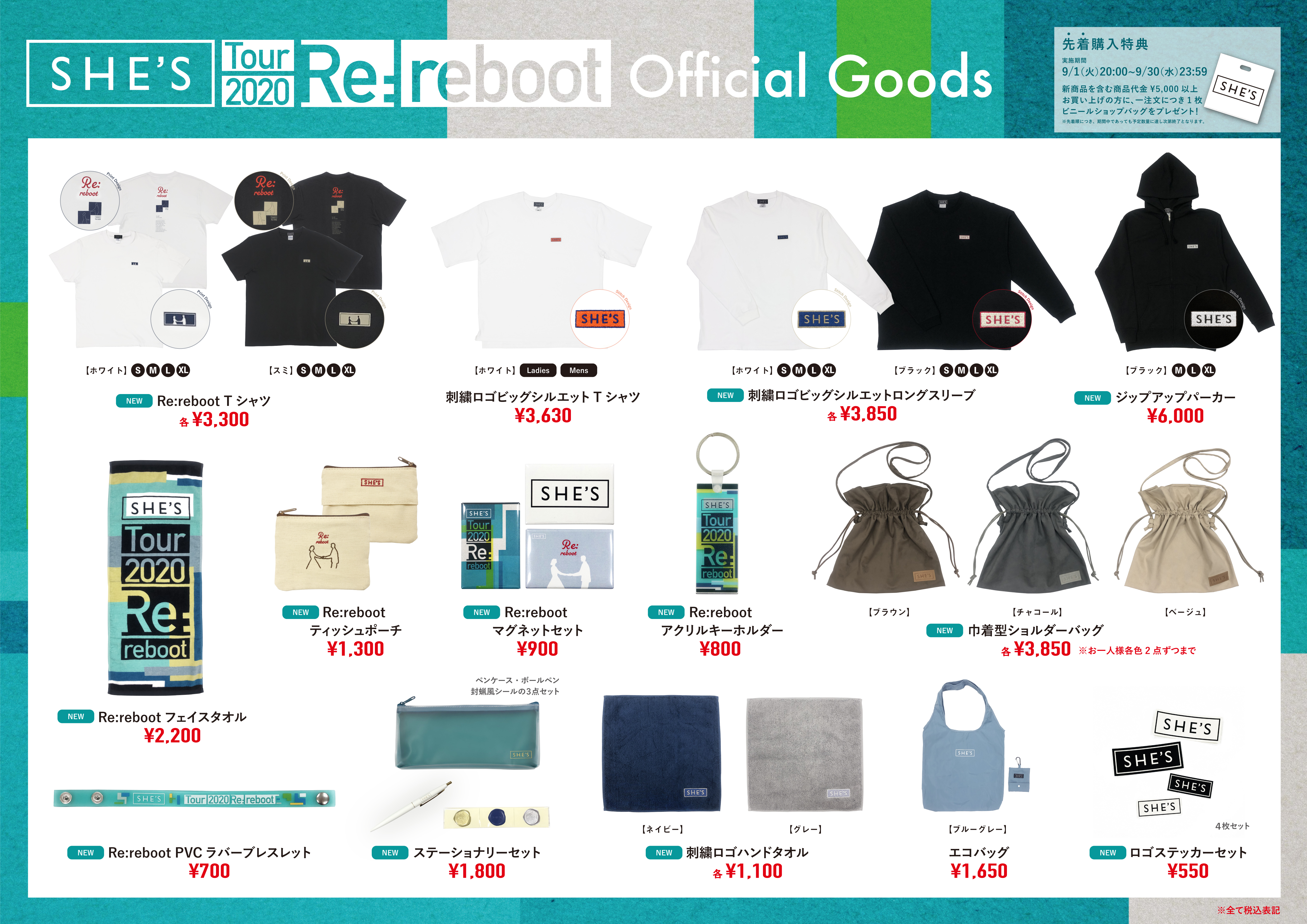 10月10日(土)名古屋ダイヤモンドホールを皮切りに開催する全国ツアー「SHE’S Tour 2020 ~Re:reboot~」のツアーグッズが完成しました!