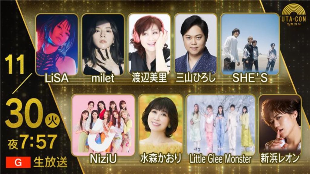 出演:SHE’S,新浜レオン,NiziU,水森かおり,三山ひろし,milet,LiSA,Little Glee Monster,渡辺美里,フラッシュ金子,MUSIC CONCERTO