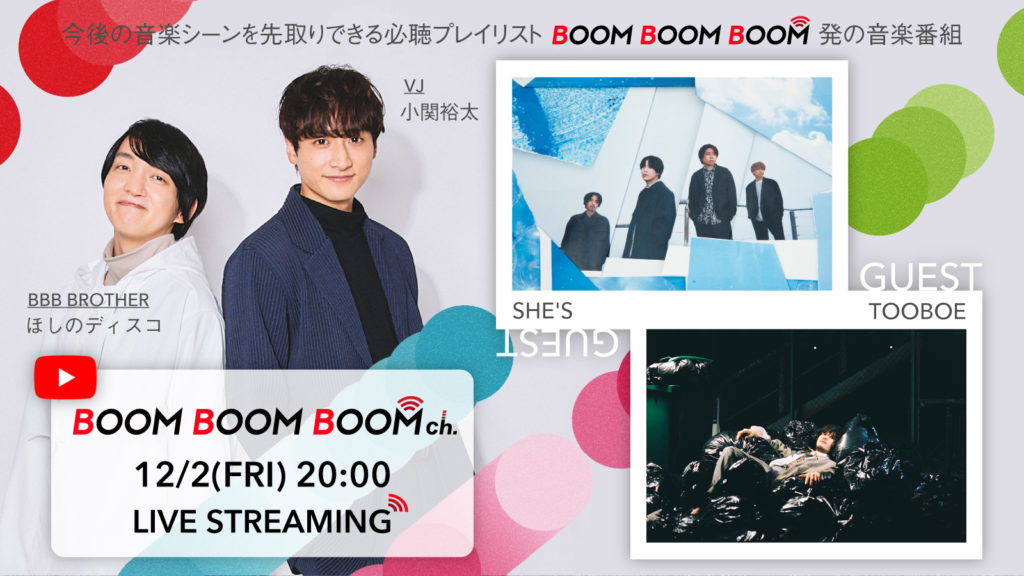 『BOOM BOOM BOOM ch.』にSHE’Sメンバー全員で出演します。