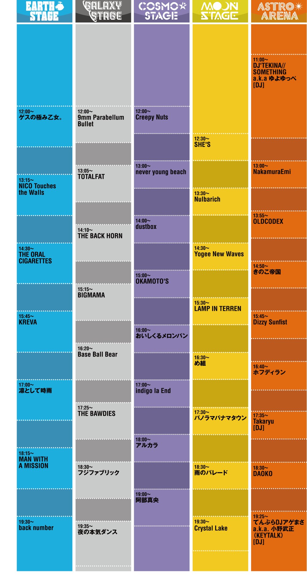 2017.11.22 「COUNTDOWN JAPAN 17/18」タイムテーブル発表! 年末に幕張で開催の「COUNTDOWN JAPAN 17/18」タイムテーブルが発表になりました! SHE’Sは12月30日(土)12:30~、MOON STAGEに出演します。 http://countdownjapan.jp/