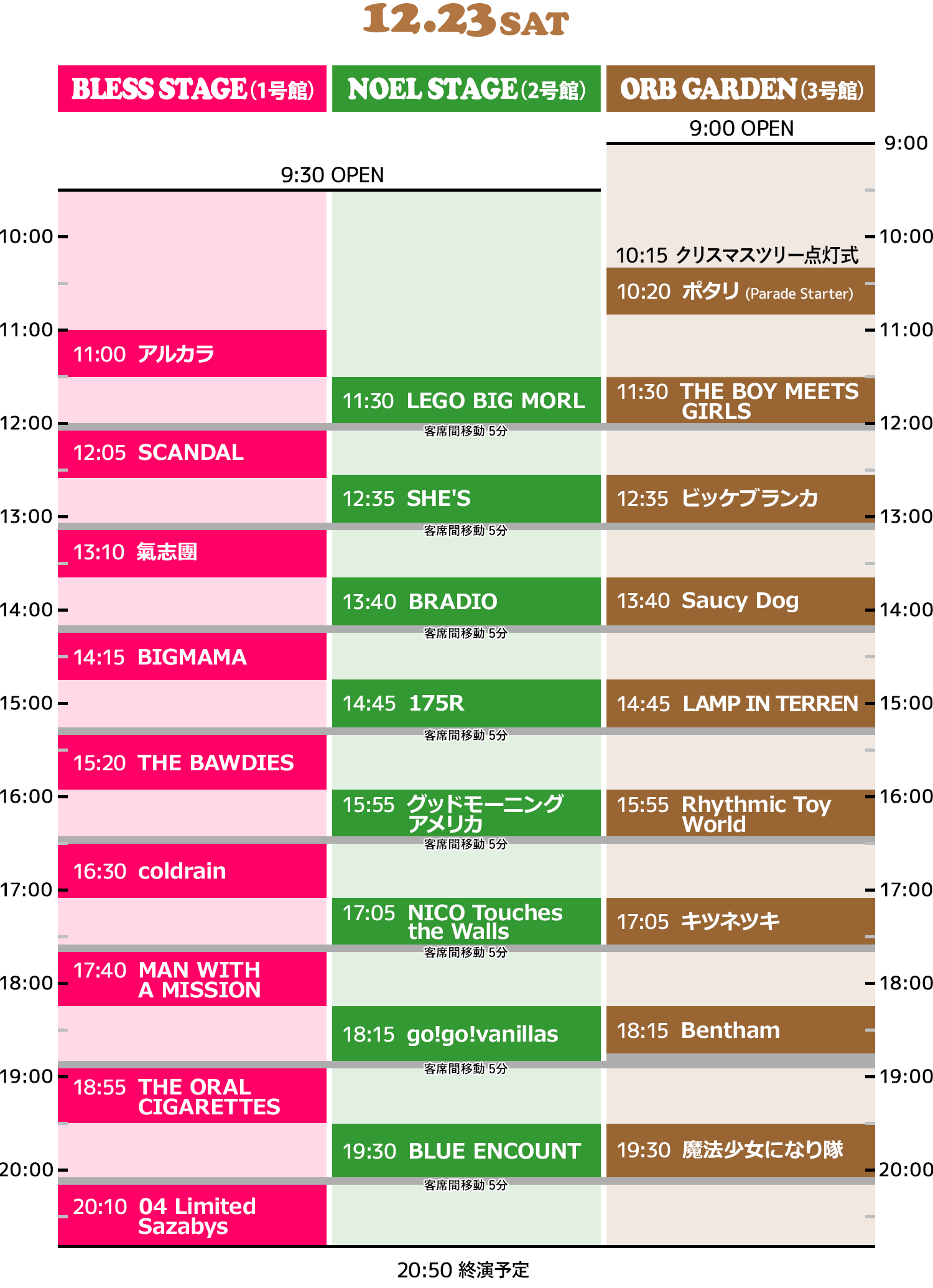 SHE’Sは12/23(土) 12:35~NOEL STAGEに出演します。