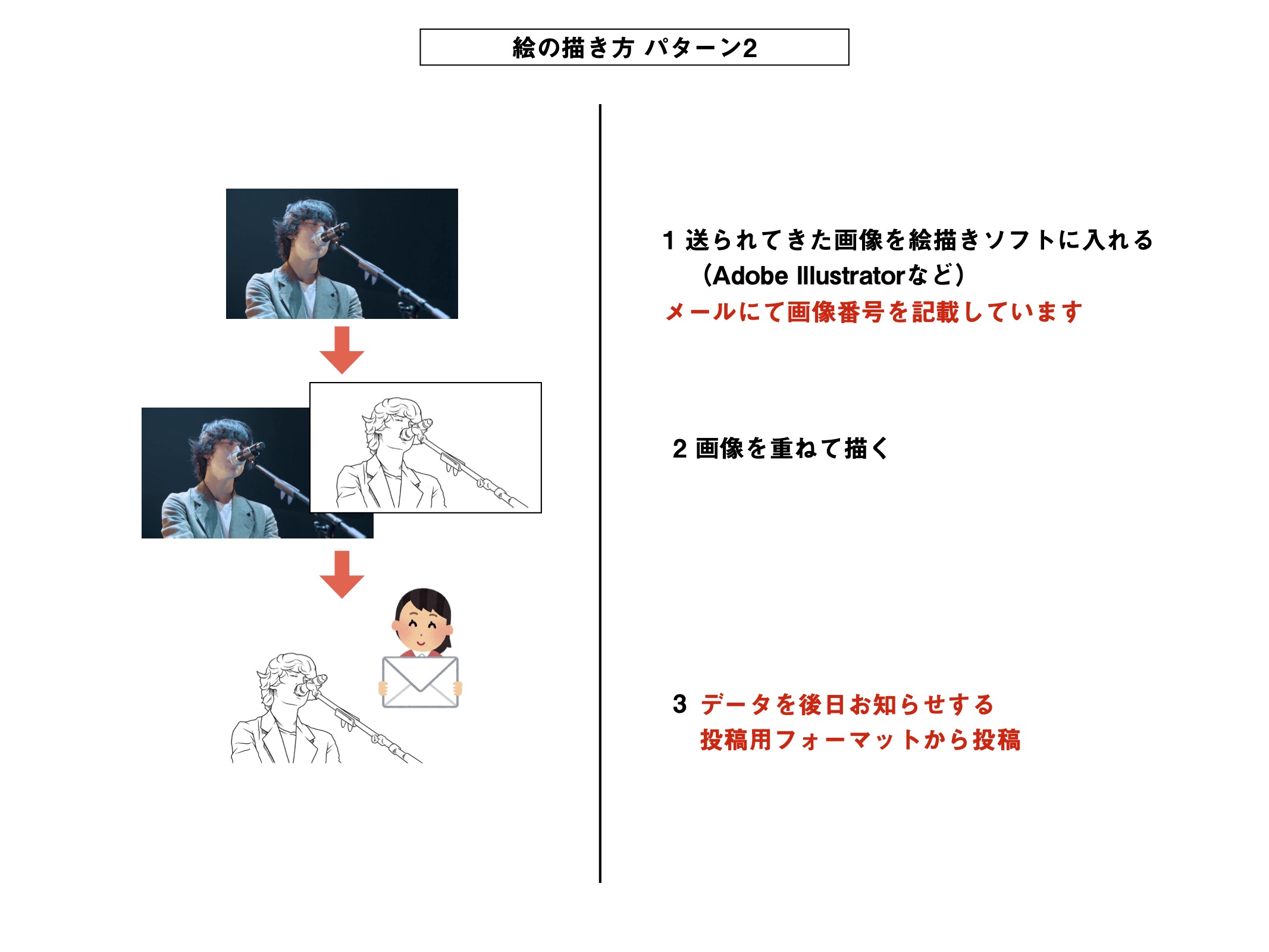 後日、画像が送られて来ますので、その画像の人物部分をなぞってイラストにする。(背景のイラストは不要)