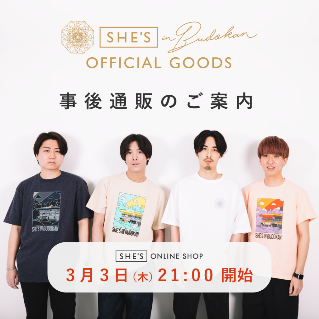 【SHE’S in BUDOKAN】オフィシャルグッズ 3月3日(木)21:00より通販開始!
