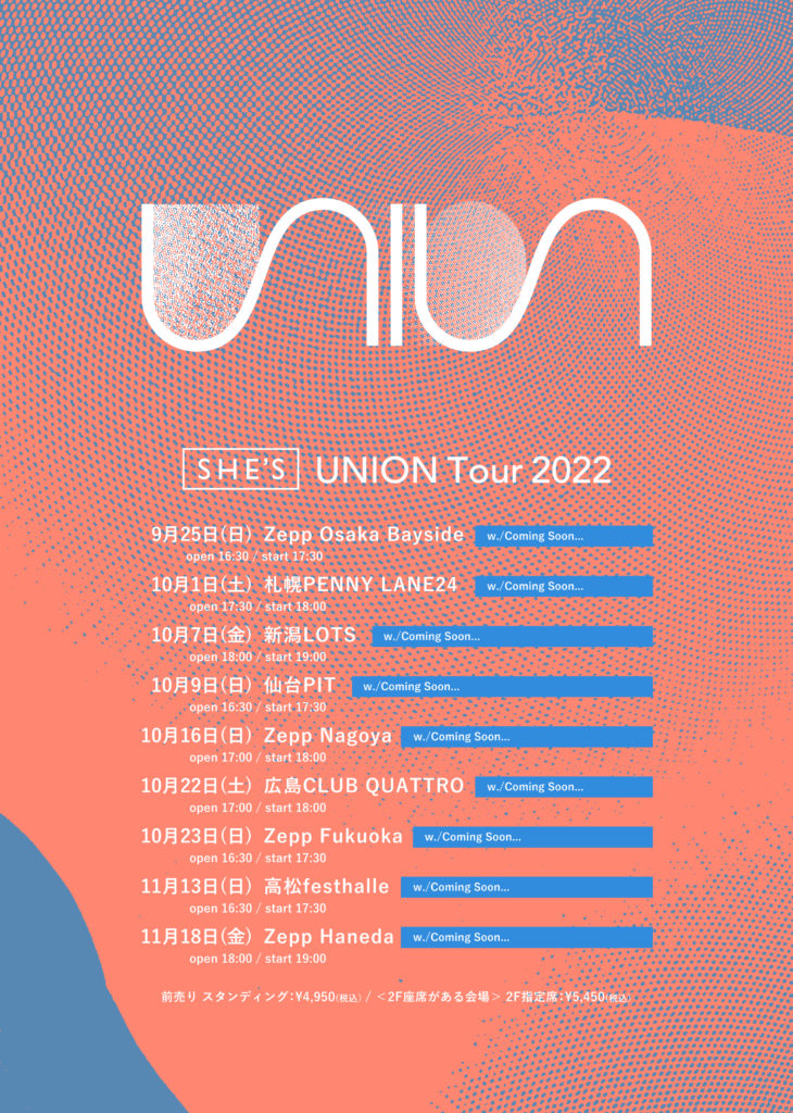 対バンツアー「SHE’S UNION Tour 2022 」開催決定!!FC会員最速先行受付スタート!